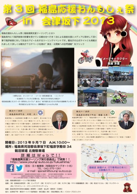 º£Ç¯¤Î¥á¥Ó¥¦¥¹¤Ï¡¢¤Á¤ç¤Ã¤È¼ñ¸þ¤òÊѤ¨¤Æ¡Ä¡Ä Ê¡ÅçÉü¶½»Ù±ç¥Ä¡¼¥ê¥ó¥°¡ÖÂè4²óÊ¡Å礪¤ó¤â¤·¤§º×¡×¤Ë¾è¤Ã¤«¤ê¤Þ¤¹¡ª http://www.young-auto.co.jp/fukushima/ ¤³¤Î¥¤¥Ù¥ó¥È¤Ï¡¢É÷ɾÈï³²¤Ë¶ì¤·¤àÊ¡Å縩²ñÄÅÃÏÊý¤Ø¥Ð¥¤¥¯¥Ä¡¼¥ê¥ó¥°¤ËÍè¤Æ¤â¤é¤¤¡¢·ÐºÑ³èư¤òÂ¥¿Ê¤¹¤ë¤³¤È¤ÇÉü¶½¤ò»Ù±ç¤·¤è¤¦¡ª¤È¤¤¤¦¤â¤Î¤Ç¤¹¡£ ¼Â¹Ô°Ñ°÷²ñ¤¬Äó·È¤¹¤ë²ñÄź䲼Į¶áÎÙ¤Îι´Û¡¢¥Û¥Æ¥ë¡¢Ì±½É¤Ê¤É¤ËÇñ¤Þ¤ê¡¢¤½¤³¤Ç°û¿©¤¹¤ë¤³¤È¤ÇÃϸµ¤Î¶È¼Ô¤¬¡Ö»Å»ö¤ò¤¹¤ë¤³¤È¤¬½ÐÍè¤ë¡ª¡×¤è¤¦¤Ë¤Ê¤ê¤Þ¤¹¡£ ½ÉÇñ¤òȼ¤¦¤¿¤á¡¢¥É¥¿»²¡¢¥É¥¿¥¥ã¥óÉԲġ£ ¤¿¤À¤·¡¢¡Ö¤ª¤ó¤â¤·¤§º×¤Ë¤Î¤ß