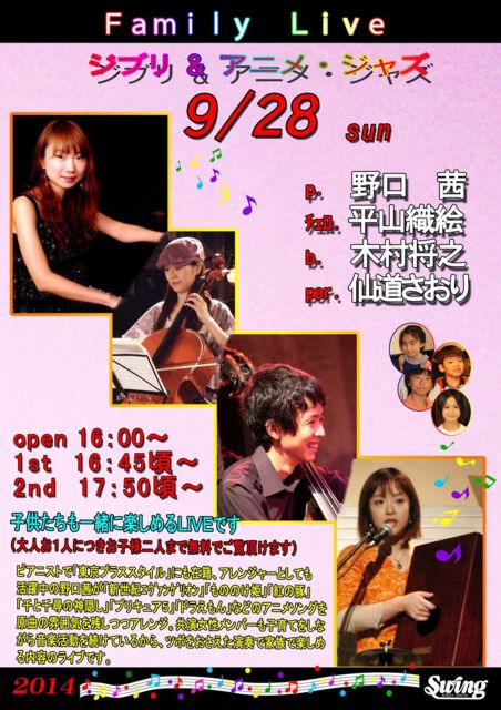 Ê¿°æ¤Î²»³Ú¥¹¥¿¥¸¥ª¡Ö¥ª¥È¥¥Á¡×¥¹¥¿¥Ã¥Õ¤Îº£Ìî·¯¡£ ¼Â¤ÏÀ¨ÏÓ¥®¥¿¥ê¥¹¥È¤À¤Ã¤¿¤Î¤Ç¤¹^^ ¤½¤ó¤ÊÈब´ë²è¤·¤¿Chat-chu¤ÇÍ·¤Ü¤¦¥é¥¤¥Ö(¾Ð) ¤¤¤è¤¤¤è9·î28Æü¤Ë1²óÌܤò·Þ¤¨¤Þ¤¹¡£ Charge ¡ï1,500¡Ê¡ï500¥Á¥±¥Ã¥ÈÉÕ¡Ë OPEN¡¡18:00 START¡¡18:30 ³Æ¥¢¡¼¥Á¥¹¥È¤Î¤´¾Ò²ð¤Ï¥³¥Á¥é¢ Ť¤¤è¡Á£÷ ¡úORI(¥ª¥ê) JAZZ¹¥¤¤ÎÉã¿Æ¤Î±Æ¶Á¤Ç¼«Á³¤È²Î¤¦¤³¤È¤Ë¶½Ì£¤ò»ý¤Ä¤è¤¦¤Ë¤Ê¤ë¡£ ¥ª¥ê¥¨¥ó¥¿¥ë¤ÇÎ϶¯¤¯¤â¡¢Á¡ºÙ¤ÊÊñ¤ß¹þ¤à²ÎÀ¼¤Ë̥뤵¤ì¤ë¥Õ¥¡¥ó¤Ï¿¤¤¡£ ¥¸¥ã¥ó¥ë¤Ë¤È¤é¤ï¤ì¤º¡¢Â¿Íͤʳڶʤò¤¦¤¿¤Ã¤Æ¤¤¤ë¡£ ¥¦¥§¥Ç¥£¥ó¥°¥½¥ó¥°¤Îºî¶Ê¤Ë¤âÄêɾ¤¬¤¢
