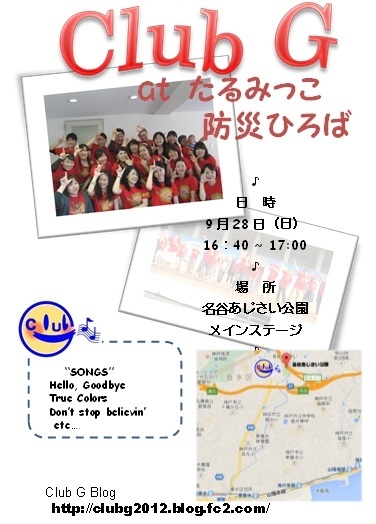 ¿À¸Í¼þÊÕ¤ÇGleeÉô³èư¤·¤Æ¤¤¤Þ¤¹¡¡Club G ¤Ç¤¹¡£ ¤¿¤ë¤ß¤Ã¤³ËɺҤҤí¤Ð2014¤Î¥¹¥Æ¡¼¥¸¥¤¥Ù¥ó¥È¤Ë»²²Ã¤¹¤ë¤³¤È¤Ë¤Ê¤ê¤Þ¤·¤¿¡£ https://www.facebook.com/tarumikko2014 Glee ¤ÎÎ϶¯¤¤¶Ê¤Ç¥¤¥Ù¥ó¥È¤òÀ¹¤ê¾å¤²¤é¤ì¤¿¤é¤¤¤¤¤Ê¤È»×¤¤¤Þ¤¹¡£ À§È󤪱ۤ·¤¯¤À¤µ¤¤¡£ Æü»þ¡§9·î28Æü(Æü)¡¡16:40¡Á17:00 ¾ì½ê¡§Ì¾Ã«¤¢¤¸¤µ¤¤¸ø±à¥á¥¤¥ó¥¹¥Æ¡¼¥¸ ¤Ê¤ª¡¢Club G ¤Ç¤Ï¡¢¤¤¤Ä¤Ç¤â°ì½ï¤Ë²Î¤¦¥á¥ó¥Ð¡¼¤òÊ罸¤·¤Æ¤¤¤Þ¤¹¡£ ¶½Ì£¤¬¤¢¤ëÊý¤ÏÀ§Èó¤´Ï¢Íí¤¯¤À¤µ¤¤¡£ blog: http://clubg2012.blog.fc2.com/