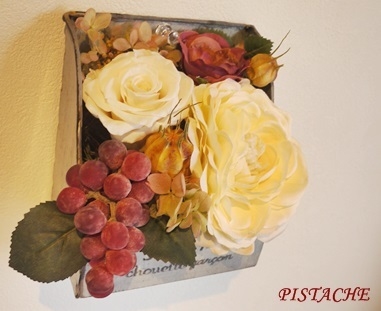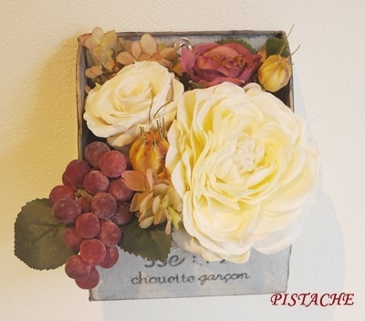 お子さん連れでも気軽におけいこ。 フラワースクールPISTACHE。 9月レッスンのご案内です。 【葡萄とバラのブリキアレンジ】 (器サイズ) W 10.5 x H 12.5 x D 7cm 置いても、壁にかけても飾ることができます。 使用している材料は アートフラワー、プリザーブドフラワー、 アートの実などです。 【レッスン料】 3800円(材料費こみ) 【日時】 9月 1日(月)10:00、13:30 5日(金)10:00、13:30 8日(月)10:00、13:30 12日(金)10: