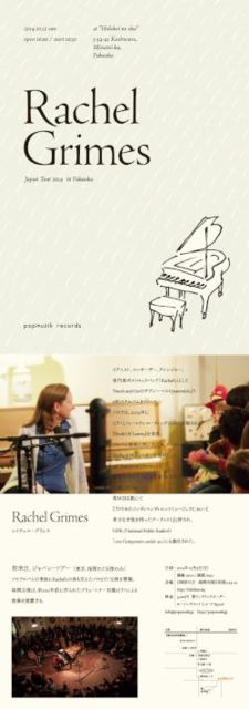 Rachel's¤ÎRachel Grimes¤¬½éÍèÆü¤·¤Þ¤¹¡£ º£²ó¤Î¸ø±é¤ÏÅìµþ10·î11Æü¡¢Ê¡²¬10·î12Æü¤Î£²¸ø±é¤Î¤ß¡£ ¥½¥í¥¢¥ë¥Ð¥à¤«¤é¤Î³Ú¶Ê¤Ï¤â¤Á¤í¤ó¡¢Rachel's¤Î¶Ê¤â¸ò¤¨¥½¥í¥Ô¥¢¥Î¸ø±é¤ò³«ºÅ¡£ Ê¡²¬¸ø±é¤ÏÌó100ǯÁ°¤Ëºî¤é¤ì¤¿¥Ö¥ê¥å¡¼¥È¥Ê¡¼¼ÒÀ½¤Î¥Ô¥¢¥Î¤Ç¤Î±éÁդȤʤê¤Þ¤¹¡£ Rachel Grimes Japan Tour 2014 in Fukuoka Æü»þ¡§2014ǯ 10·î12Æü¡ÊÆü¡Ë¡¡ OPEN 16¡§00 / START16¡§30 ²ñ¾ì¡§Æü»þ·×¤ÎµÖ (Ê¡²¬¸©Ê¡²¬»ÔÆî¶èÇð¸¶3-34-41) ¥Á¥±¥Ã¥È¡§3,500±ß ¡ÊÍ×¥ï¥ó¥É¥ê¥ó¥¯¥ª¡¼¥À¡¼¡Ë ¥Á¥±¥Ã¥ÈȯÇä popmuzik records web ticket ¥í¡¼¥½¥ó¥Á¥±¥Ã¥È L