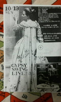 貴重なスペースをお借りいたします。 「吉祥寺・クワランカ カフェ」 『GYPSY SWING JAZZ LIVE 』 10月19日(日)午後7時30分〜 チャージ1500円 『GYPSY SWING JAZZ LIVE 』 ギター 兜守よしあき ギター 大橋浩司 ギター 加賀原和夫 スタンダードジャズ、シャンソン・・・ ジャンゴ・ラインハルトの名曲も演奏いたします。 ※ご来場の際 御予約をお勧めいたします! 「クワランカ カフェ」 吉祥寺 @qwalunca_cafe 東京都武蔵野市吉祥寺南