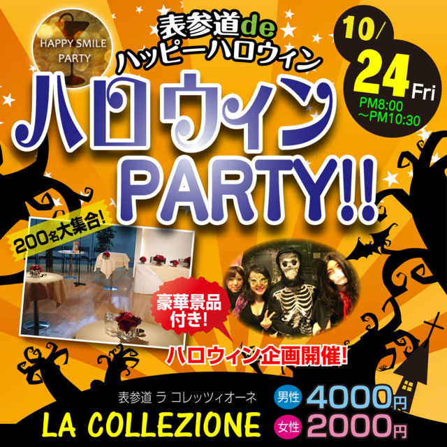 月日(金)表参道駅から徒歩3分 『LA COLLEZIONE』貸切300名Spceial Party 表参道『LA COLLEZIONE』貸切PARTY 表参道の超人気会場貸切でハロウィンPARTYですヾ(*´∀`*)ノ゛ いま160名86名集まっています♪