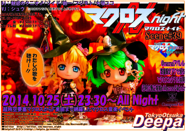 ¥Þ¥¯¥í¥¹¥Õ¥¡¥ó¤Îͻ֤ˤè¤ë¡¢ ºîÉʤȲ»³Ú¤ò¤³¤è¤Ê¤¯°¦¤·¤Æ¤ä¤Þ¤Ê¤¤¿Í¤ØÂ£¤ë¡¢ Á´¥·¥ê¡¼¥º¤òÌÖÍ夷¤¿DJ¥Ñ¡¼¥Æ¥£¡¼¡õ²»³Ú¤Îº×ŵ¤Ï¹¹¤Ë³ÈÂ硪 ³§¤µ¤ó¡¢¤´Í½Äê¤Î¾å¤ªÉÕ¤¹ç¤¤¤ª´ê¤¤¤·¤Þ¤¹¡ù ¡ÈÅìµþ¥Þ¥¯¥í¥¹¥Ê¥¤¥ÈScene.39¡É ¡Á¤ï¤¿¤·¤Î²Î¤òݤ±¡¼¡ª¡ª¡Á ¡üÆüÄø¡§2014ǯ10·î25Æü(ÅÚ)23:00¡ÁAll Night¡ª ¡üÆþ¾ì»þ´Ö¡§¥³¥¹¥×¥ì´õ˾¼Ô¡§23:00¡Á¡¡°ìÈÌ»²²Ã¡§23:30¡Á ¡ü¾ì½ê¡§ÂçÄÍDeepa¡¡¢¨JR»³¼êÀþ¡¦ÂçÄÍ±ØÆî¸ý¡¡ÅÌÊâ1ʬ ¡ü½»½ê¡§ÅìµþÅÔËÅç¶èÆîÂçÄÍ3-49-10ÂçÄÍÎëËÜ¥Ó¥ëB1 ¡üTEL¡§ 03-3984-6085 ¡ü²ñ¾ì¥µ¥¤¥È¡§http://www.otsukadeepa.jp/