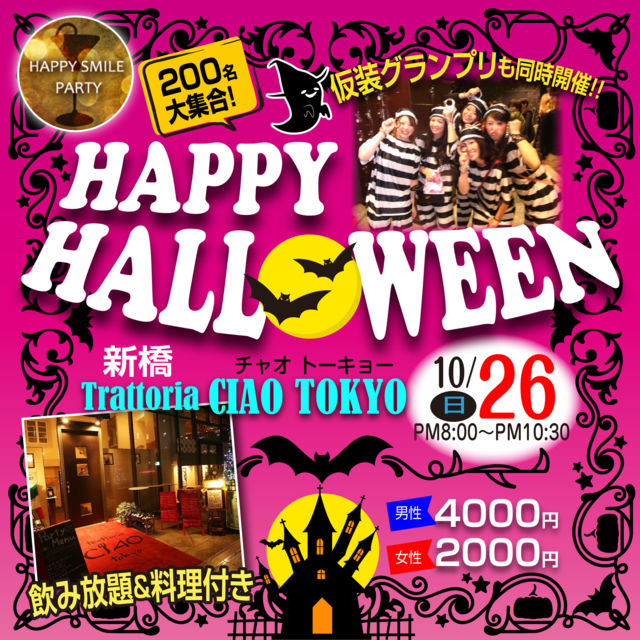 月日(日)20:00〜22:30 食べ放題&飲み放題200名HalloweenParty 新橋・汐留イタリア街でHalloweenPARTY 新橋で『大人のハロウィンパーティー2014』を開催します 飲み放題、食べ放題でハロウィンパーティーを心ゆくまでお楽しみ