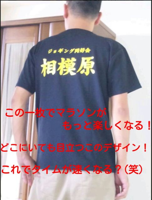 こんにちは(o^^o) 暑い日と雨の日と天候の変化が激しいこの頃ですが、皆さんお体労ってジョギングされてますか? 最近、新規の方も入られJDSTシャツを希望する声も挙がっていましたので、具体的に増産の方向で動きたいと思います。 今回も色・デザインともに黒生地に黄色字のJDSオリジナルデザインで増産したいと思います。 生地に関しては夏でも使用できるような薄目にしましたので、新規の方も既存の方も受付ますのでよろしくお願いします。 ただし、合計が11枚以上にならないとオーダーできないので、これを機に2枚目、3枚目と購入の検討頂