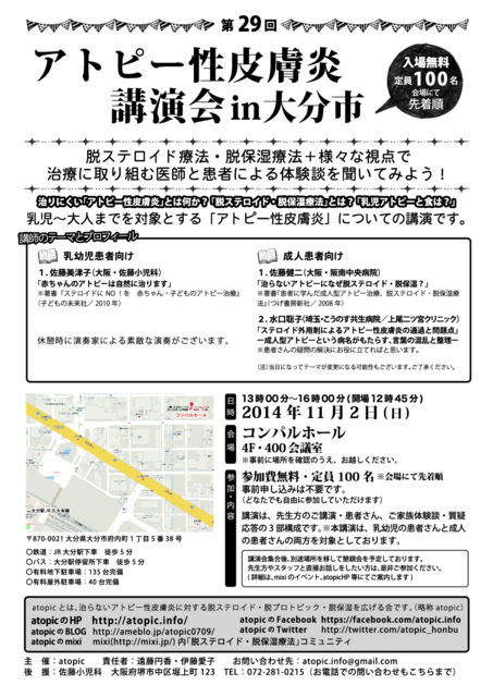 Âçʬ¸©¤Ç¤Î¹Ö±é²ñ¤Ç¤¹¡£ À§Èó¤´»²²Ã¤¯¤À¤µ¤¤¡ª Ãí¡§¿å¸ýÀèÀ¸¤¬µÞ¤¤ç¤´»²²Ã¤È¤Ê¤ê¤Þ¤·¤¿¤Î¤Ç¡¢½ªÎ»»þ´Ö¤¬Êѹ¹¤Ë¤Ê¤ê¤Þ¤·¤¿¡£ ¡ö¡ö¡ö¡ö¡ö¡ö¡ö¡ö¡ö¡ö¡ö¡ö¡ö¡ö¡ö¡ö 楹¥Æ¥í¥¤¥ÉÎÅË¡¡¦Ã¦Êݼ¾ÎÅË¡¡ÜÍÍ¡¹¤Ê»ëÅÀ¤Ç ¼£ÎŤ˼è¤êÁȤà°å»Õ¤È´µ¼Ô¤Ë¤è¤ëÂθ³Ã̤òʹ¤¤¤Æ¤ß¤è¤¦¡ª ¼£¤ê¤Ë¤¯¤¤¡Ö¥¢¥È¥Ô¡¼ÀÈéÉæ±ê¡×¤È¤Ï²¿¤«¡©¡Ö楹¥Æ¥í¥¤¥É¡¦Ã¦Êݼ¾ÎÅË¡¡×¤È¤Ï¡© ¡¡¡ÖÆý»ù¥¢¥È¥Ô¡¼¤È¿©¤Ï¡©¡× ÍÄ»ù¡ÁÂç¿Í¤Þ¤Ç¤òÂоݤȤ¹¤ë¡Ö¥¢¥È¥Ô¡¼ÀÈéÉæ±ê¡×¤Ë¤Ä¤¤¤Æ¤Î¹Ö±é¤Ç¤¹¡£ ¹Ö±é¤Ï¡¢ÀèÀ¸Êý¤Î¤´¹Ö±é¡¦´µ¼Ô¤µ¤ó¡¢¤´²È²Âθ³ÃÌ¡¦¼Áµ¿±þÅú¤Î3Éô¹½À®¤Ç¤¹¡£ ¢¨ÆýÍÄ