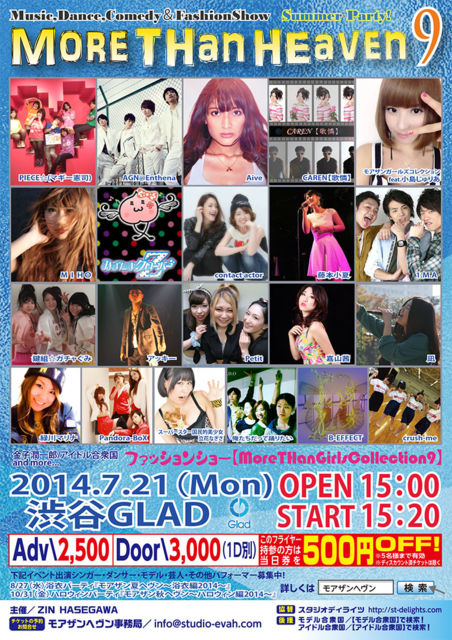 ²¼µ¤Î¤è¤¦¤Ê£³Â祤¥Ù¥ó¥È¤ò¹Ô¤¦¤³¤È¤È¤Ê¤ê¤Þ¤·¤Æ¸½ºß½Ð±é¼Ô¤òÊ罸¤·¤Æ¤¤¤Þ¤¹¡£ ¡¡Ú¥â¥¢¥¶¥ó²Æ¥Ø¥ô¥ó¡ÁÍá°áÊÔ2014¡Á¡Û ²ñ¾ì¢¡ Æü»þ¢¡2014ǯ8·î27Æü¡Ê¿å¡Ë17»þ¥ª¡¼¥×¥ó¡ÊͽÄê¡Ë ÆâÍÆ ½Ð±é¼ÔÁ´°÷Íá°á¤«¿ÓÊ¿¤ÎÍá°á¥¤¥Ù¥ó¥È ¥·¥ó¥¬¡¼&¥À¥ó¥µ¡¼&¤½¤Î¾¥¨¥ó¥¿¥á·Ï¥Ñ¥Õ¥©¡¼¥Þ¡¼¤Ë¤è¤ë¥¸¥ã¥ó¥ë¥Õ¥ê¡¼¥¤¥Ù¥ó¥È¤Ç¤¹¡£ ²Æ¤Î»×¤¤½Ð¤Å¤¯¤ê¥¤¥Ù¥ó¥È¡£ ư²è¥µ¥ó¥×¥ë http://www.youtube.com/watch?v=qMYydzEvMNE ¢¡Ú¥â¥¢¥¶¥ó½©¥Ø¥ô¥ó¡Á¥Ï¥í¥¦¥£¥óÊÔ2014¡Á¡Û ²ñ¾ì¢¡½ÂëGLAD Æü»þ¢¡2014ǯ10·î31Æü¡Ê¶â¡Ë17»þ¥ª¡¼¥×¥ó¡ÊͽÄê¡Ë [Æâ
