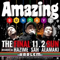 「AMAZING SUNDAYZ THE FINAL」@HARLEM/BX CAFE ★★★★★ エントランスにて「ユキのゲストでアメサン」とお伝え頂ければ、何名様でもゲスト料金にてご入場頂けます! お気軽にご利用下さい! ★★★★★ ☆☆☆☆☆ または、メッセージ頂ければ個別のゲストもお取り致します! 代表者名とだいたいの人数をメッセージ下さい! 折り返しメッセージ致します! ☆☆☆☆☆ ※ゲスト料金※ 1500円/1D OPEN: 22:00 GENRE: HIP HOP/R&B RESIDENT DJ: HAZIME / SAH / ALAMAKI ※※WARNING※※ 写真