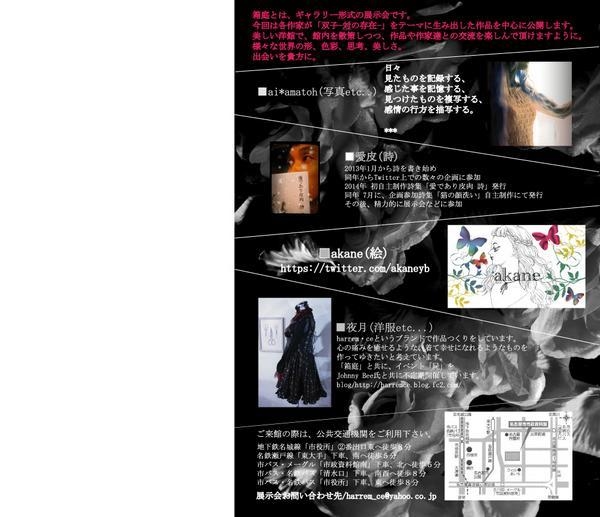 Ÿ¼¨²ñ¡ÖÈ¢Äí vol.3¡× -ÁлÒŸ- 2014/11/8(ÅÚ) 12:00¡Á17:00¡¡ 2014/11/9(Æü) 09:00¡Á15:00 ̾¸Å²°»Ô»ÔÀ¯»ñÎÁ´Û ÆóÆü´Ö¤ËÅϤꡢ½ÅÍ×ʸ²½ºâ¤Ë»ØÄꤵ¤ì¤¿¡¢ÂçÀµ¥í¥Þ¥óɺ¤¦Íδۤˤơ¢ºîÉÊŸ¼¨²ñ¤ò³«ºÅ¤¤¤¿¤·¤Þ¤¹¡£ »²²Ã¥¢¡¼¥Æ¥£¥¹¥È ¢£Ìë·î(ÍÎÉþ) ¢£akane¡Ê³¨¡Ë ¢£ai(¼Ì¿¿¡Ë ¢£°¦Èé(»í¡Ë ¥®¥ã¥é¥ê¡¼·Á¼°¤ÎŸ¼¨²ñ¤Ç¤¹¡£ ÅöÆü¡¢²ñ¾ì¤Ç¤ÎÈÎÇä¤Ï¹Ô¤¤¤Þ¤»¤ó¡£ µ¤¤ËÆþ¤Ã¤¿ºîÉʤ¬¤¢¤ê¤Þ¤·¤¿¤é¡¢¼è¤êÃÖ¤¤µ¤»¤ÆÄº¤¤¤Æ¡¢¸åÆü¡¢¤ªÅϤ·¤µ¤»¤ÆÄº¤¤Þ¤¹¡£ ÈÕ½©¤Î¶õ¤Î²¼¡¢Èþ¤·¤¤ÍδۤÈÎФ¢¤Õ¤ì¤ë¤ªÄí¤Ç¡¢¥´¥·¥Ã¥¯¡õ¥í