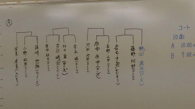 ミックスダブルス大会 11月09日 男女OP・B級・MS(ペア合わせて90歳) 場所 筑豊緑地公園 10月25日締切り B級 9時集合受付 下瀬・早田ペア(早田1500円済) 三浦・辻 ペア(三浦 1500円) 高田・笠 ペア(高田 1500円) 西・宮川 ペア (西 1500円済) 秋山・後藤ペア(1500円x2済) 小森・浅木ペア(浅木1500円) 吉本・高橋ペア OP 10時集合受付 岩元・中島ペア 安東・安東ペア(1500円x2済) B級 31組 OP級 13組参戦 MS 0組(無し) 画像見えますか〜!トーナメント、負けコンソレ最低2試合出来ます。 試合形