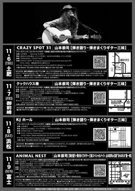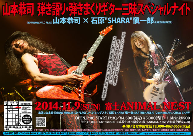 »³Ëܶ³»Ê¡¡¡ØÃƤ¸ì¤ê¡¦ÃƤ¤Þ¤¯¤ê¥®¥¿¡¼»°Ë楹¥Ú¥·¥ã¥ë¥Ê¥¤¥È¡¡»³Ëܶ³»Ê ¡ßÀи¶"SHARA"ØÆ°ìϺ¡Ù ¡Ê¥¢¥³¡¼¥¹¥Æ¥£¥Ã¥¯¡¢¥¨¥ì¥¯¥È¥ê¥Ã¥¯¥®¥¿¡¼¤ò¶î»È¤·ÆÈ¼«¤ÎÀ¤³¦¤òˤ®¤¢¤²¤ëìÔÂô¤Ê¥é¥¤¥ô¤Ë¡¢¤µ¤é¤ËÀи¶"SHARA"ØÆ°ìϺ¡ÊEARTHSHAKER¡Ë¤¬ÆÃÊÌ»²²Ã!!!¡Ë ½Ð±é¡§»³Ëܶ³»Ê¡¡¥¹¥Ú¥·¥ã¥ë¥²¥¹¥È/Àи¶"SHARA"ØÆ°ìϺ ¡¡¡¡¡¡Opening Act/CHAW CHAW ÎÁ¶â¡§Á°Çä¡ï4,500 / ÅöÆü¡ï5,000 (¶¦¤Ë¥É¥ê¥ó¥¯ÂåÊÌ) ¡¡¡¡¡¡³ØÀ¸¡ï2,000(¥É¥ê¥ó¥¯ÂåÊ̡ˢ¨¹â¹»À¸°Ê²¼¡Ê¸ÂÄêËç¿ô¡¦Í×ͽÌó¡Ë »þ´Ö¡§³«¾ì17:00 / ³«±é17:30 ²ñ¾ì¡§ÉÙ»ÎAnimal Nest¡Êhttp://animalnestlive.web.