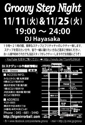Âè2¡¦Âè4¤Î²ÐÍËÆü¤Ï¡ÚGroovy STEP NIGHT¡Û19»þ¡Á21»þ°Ì¤Î´Ö¡¢´Êñ¤Ê¥¹¥Æ¥Ã¥×¤È¥Õ¥ê¥Á¥ã¥Á¥ã¤Î¥ì¥¯¥Á¥ã¡¼¤¢¤ê¤Þ¤¹¡ª ½é¿´¼Ô¤ÎÊý¡¢¤ª°ì¿ÍÍͤǤ⡢ÅöŹ¥¹¥¿¥Ã¥Õ¤¬¤´Âбþ¤µ¤»¤ÆÄº¤¤Þ¤¹¤Î¤Ç¤É¤¦¤¾¤ªµ¤·Ú¤Ë¤´»²²Ã¤¯¤À¤µ¤¤¢ö ¡ÚDJ¡ÛHayasaka ¡Ú²»³Ú¡ÛALL MIX ¡Ê21»þ°Ì¤«¤é¤ÏÄ̾ï¤ÎDISCO TIME¤Ë¤Ê¤ê¤Þ¤¹¡£¥ê¥¯¥¨¥¹¥È¤Ë¤â½ÐÍè¤ë¸Â¤ê¤ª±þ¤¨¤¤¤¿¤·¤Þ¤¹¤Î¤ÇDJ¤Þ¤Ç¤É¤¦¤¾¢ö ¡Ú³«ºÅ»þ´Ö¡Û 19:00¡Á24:00 ¡ÚÎÁ¶â¡Û ÃËÀ¡§¡ï2,000/2Drinks¡Ü¥Ó¥å¥Ã¥Õ¥§ ½÷À¡§¡ï1,500/2Drinks¡Ü¥Ó¥å¥Ã¥Õ¥§ ¡Ê¥Ó¥å¥Ã¥Õ¥§¤Ï19»þ¤è¤ê¤´ÍѰÕÃפ·¤Þ¤¹¤¬¿ôÎ̸ÂÄê