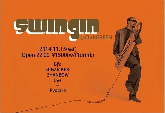♪soul/fank/R&B <11/15(sat) OPEN 22:00> 【SWINGIN】 **GUEST DJ** Ryotaro ***DJs*** SUGAR-KEN Bee SHANBOW [door 1500yen] [w/f 1Drink]