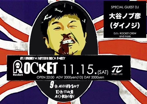 管理人様、告知失礼致します。 ロックが大好きな皆さまへお知らせさせて下さい。 昨年末より産休を頂いているRocketですが、もうすぐ9周年を迎えるにあたり、一夜限りで復活する事になりました。 GUEST DJでには、Rocketのアニバーサリーには欠かせない大谷ノブ彦(ダイノジ)の出演が決定しています!!! 以下、イベントの詳細です! Rocket vol.42 〜9th Anniversary!10周年までAto-Ichinen!!〜 ■日時 11/15(土)22:00〜 ※イベント終了時刻は、4:00予定です。 ■場所 SPACE LAB π http://www.spacelab-pi.com/ ■料金