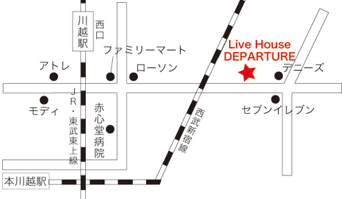 LIVE¡÷Live House DEPARTURE 2014ǯ11·î24Æü¡Ê·î¡Ë ¾ÜºṲ̀Äê Live House DEPARTURE¥Û¡¼¥à¥Ú¡¼¥¸¡§http://live-departure.com/ Access: ¢©350-1114 ºë¶Ì¸©Àî±Û»ÔÅìÅÄÄ®6-8 B1 JR¡¿ÅìÉðÅì¾åÀþ¡ÖÀî±Û±Ø¡×À¾¸ý¤ò½Ð¤ÆÆ»¤Ê¤ê¤Ë±¦¤Ø¿Ê¤ß¡¢¿®¹æ¤Î¤¢¤ë ¸òº¹ÅÀ¤òº¸ÀÞ¡¢À¾ÉðÀþ¤ÎƧÀÚ¤ò±Û¤¨¤¿¤é¤¹¤°¡£ÅÌÊâ7¡Á8ʬ¤Ç¤¹¡£ À¾Éð¿·½ÉÀþ¡ÖËÜÀî±Û±Ø¡×½Ð¤¿¤éÆ»¤Ê¤ê¤Ë±¦¤Ø¿Ê¤ß¡¢JR¤Î¹â²Í¤ò¤¯¤°¤ê º¸¥«¡¼¥Ö¿®¹æ¤Î¤¢¤ë¸òº¹ÅÀ¤ò±¦ÀÞ¡¢À¾ÉðÀþ¤ÎƧÀÚ¤ò±Û¤¨¤¿¤é¤¹¤°¡£ ÅÌÊâ13¡Á14ʬ¤Ç¤¹¡£ ¢¨ÀìÍѤÎÃó¼Ö¾ì¡¦ÃóÎØ¾ì¤Ï¤¢¤ê¤Þ¤»¤ó¤Î¤Ç¡¢ºÇ´ó¤Î¥³¥¤¥ó¥Ñ¡¼