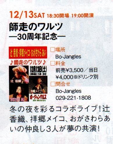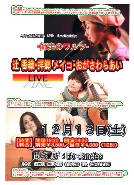 £±£²·î£±£³Æü(ÅÚ¡Ë¡¡»Ï¤Þ¤ê¤Ï£·»þ£³£°Ê¬¡Á ¡Ö»ÕÁö¤Î¥ï¥ë¥Ä¡× ÄԹῥ¡¢ÇÒ¶¿ ¥á¥¤¥³¡¢¤ª¤¬¤µ¤ï¤é¤¢¤¤¡¡LIVE ¡÷Bo-Jangles ¡ÊÁ°¡Ë¡ï£³£µ£°£°¡¡¡ÊÅö¡Ë¡ï£´£°£°£°¡¡(1¥É¥ê¥ó¥¯ÊÌ ) µ¹¤·¤¯¤ª´ê¤¤Ãפ·¤Þ¤¹¡£ Ì䡦¾ì½ê¡§¡¡¿å¸Í¡¡Bo-Jangles °ñ¾ë¸©¿å¸Í»Ô¿·Áñ1¡Ý2¡Ý11¡¡TEL029¡Ý221¡Ý1808