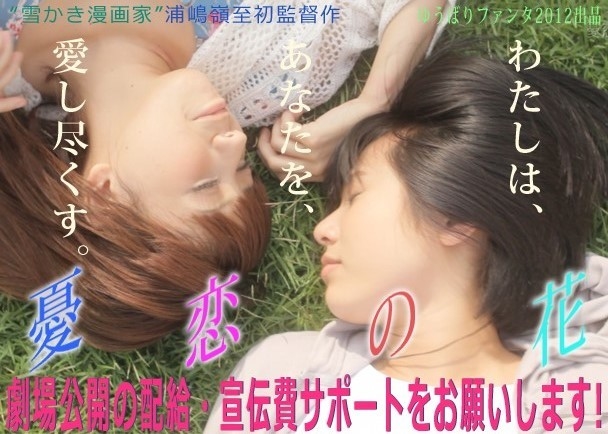 浦嶋嶺至と申します。 私は数年前の都条例「非実在」規制の際に夕張で雪かきをし、当時の猪瀬副都知事へ反対意思表明のアピールをしました。 その後2011年に『憂恋の花』という長編実写映画を監督・制作し、翌2012年ゆうばり国際ファンタスティック映画祭への出品上映(フォアキャスト部門)を果たしましたが、企画当初からの目標であった劇場での公開は、制作から3年を経た現在もいまだに実現できていません。 このままではいつまでも公開の目処の立たぬまま埋もれていってしまうかもしれないと思い、このたびクラウドファンディングによる劇場公開