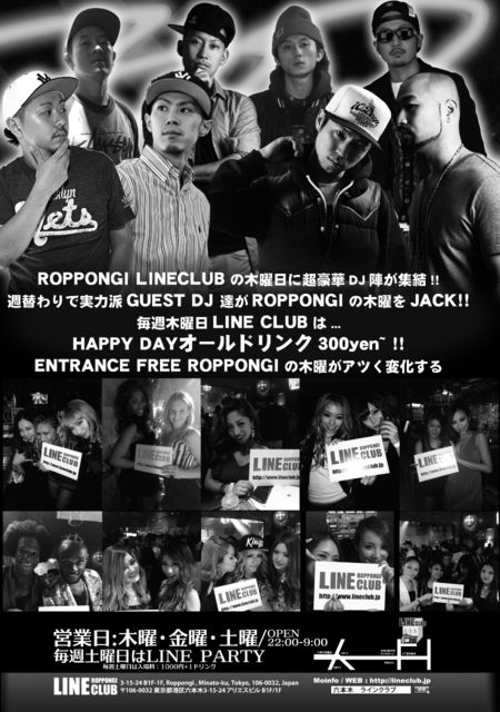 毎週木曜日、六本木LINE CLUBでは終日入場無料にて営業しています。