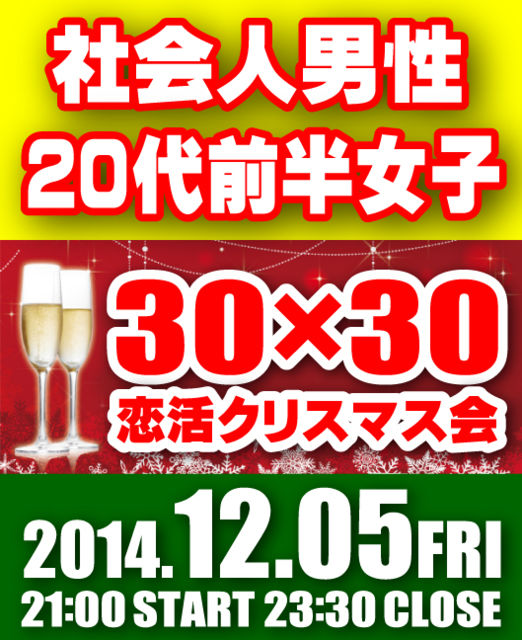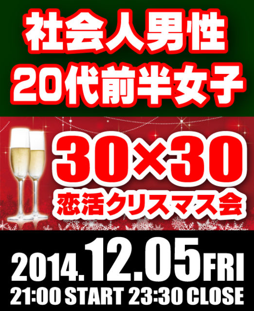 ¡Ö¼Ò²ñ¿ÍÃËÀ£³£°Ì¾¤È£²£°ÂåÁ°È¾½÷»Ò£³£°Ì¾¡× 30¡ß30̾¡ùÎø³è¥¯¥ê¥¹¥Þ¥¹²ñ³«ºÅ¡ª ¥¯¥ê¥¹¥Þ¥¹Á°¤ËÎø¿Í¤òºî¤ê¤¿¤¤Êý¡¢Í§Ã£¤òÁý¤ä¤·¤¿¤¤Êý¡¢»Å»öµ¢¤ê¤Ë°û¤ß¤¿¤¤Êý¡¢Âç¿Í¿ô¤Ï¶ì¼ê¤ÊÊý¡¢¤æ¤Ã¤¯¤ê°û¤ß¤¿¤¤Êý¤Ë¥ª¥¹¥¹¥á¤Î´ë²è¤ò¤´ÍѰÕÃפ·¤Þ¤·¤¿¢ö º£²ó¤ÏÃËÀ¤ò¼Ò²ñ¿Í¤Î¤ß¤Ë¸ÂÄꡪ½÷À¤Ï£²£°ÂåÁ°È¾¸ÂÄꡪ Âç¿Í¤ÊÃËÀ¤¬¹¥¤¤Ê½÷À¤ÎÊý¤ä¼ã¤¤½÷À¤¬¹¥¤¤ÊÃËÀ¤Ë¥ª¥¹¥¹¥á¤Ç¤¹¢ö °û¤ßÊüÂê¡õ¥³¡¼¥¹ÎÁÍý¡ª ¡Ò¾ÜºÙ¡Ó ³«ºÅÆü:12·î5Æü(¶â) ³«»Ï»þ´Ö:21:00 ½ªÎ»»þ´Ö:23:30 ¡Ò²ñÈñ¡Ó ÃËÀ:5500±ß ½÷À:3500±ß ¡Ò²ñ¾ì¡Ó SPORTS CAFE & RESTAURANT S