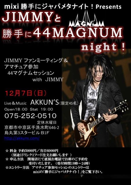 ¾¡¼ê¤Ë¥¸¥ã¥Ñ¥á¥¿¥Ê¥¤¥È¡ªPresents¡¡¡ÖJIMMY¤È¾¡¼ê¤Ë44MAGNUM night¡ªinµþÅԡ׳«ºÅ¤·¤Þ¤¹¡ª JIMMY ¥Õ¥¡¥ó¥ß¡¼¥Æ¥£¥ó¥°¡õ¥¢¥Þ¥Á¥å¥¢»²²Ã44¥Þ¥°¥Ê¥à¥»¥Ã¥·¥ç¥ó¡¡with¡¡JIMMY ¡ù£±£²·î£·Æü¡ÊÆü¡Ë ¡ùLive¡õMusic AKKUN¡ÇS¡¡¡Ê¸ÂÄê45̾¡Ë £°£·£µ¡¾£²£µ£²¡¾£°£µ£±£°¡¡ÄêµÙ¿åÍËÆü¡¡µþÅÔ»ÔÃæµþ¶è¼êÀö¿åÄ®646-2 ±¨´ÝÂè3¥¹¥¿¡¼¥Ó¥ë £Â1£Æ¡¡ ¡¡¡¡http://akkuns.com/ ¡ù£Ï£ð£å£î£±£¸¡§£°£°¡¡£Ó£ô£á£ô¡¡£±£¹¡§£°£° ¡ù ÎÁ¶â ͽÌó£µ£°£°£°±ß¡¿ÅöÆü£¶£°£°£°±ß¡ÊÊÌÅÓ£±¥É¥ê¥ó¥¯£±¥Õ¡¼¥ÉÃíʸ¤ª´ê¤¤¤·¤Þ¤¹ ¡Ë ¡ù ¿½¹þÊýË¡ ¡¡ËÜÆü11·î2Æü