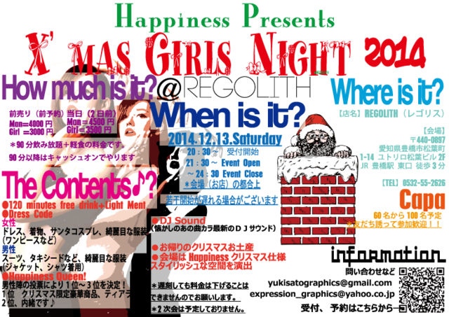 ¤³¤ó¤Ë¤Á¤Ï¡ª¡ª º£²ó¡ÖX'mas Girls Night 2014¡× ¤ÎParty¥Û¥¹¥È¤ò¶Ð¤á¤µ¤»¤Æ¤â¤é¤¤¤Þ¤¹¡¢º´Æ£Í¥´õ¤Ç¤¹¡£ ¤µ¤Æº£²ó¤Î¥¤¥Ù¥ó¥È¤Ï3ǯÁ°¤ÎÆüÍËÆü¤Ë70¿Í°Ê¾åư°÷¤·¤¿¥Ó¥Ã¥¯¥¤¥Ù¥ó¥È¡¢¥¯¥ê¥¹¥Þ¥¹¥Ñ¡¼¥Æ¥£¤ÎÉü³èº×¡ª¡ª ¤è¤ê¥Ñ¥ï¡¼¥¢¥Ã¥×¤·¤Æ... ¥¹¥¿¥¤¥ê¥Ã¥·¥å¤«¤Ä¥¢¥á¥ê¥«¥ó¥Ñ¡¼¥Æ¥£¤ÊÊ·°Ïµ¤¤Ë¤Ê¤Ã¤ÆÉü³è¤Ç¤¹¡ª¡ª »²²ÃÏÈ100¿Íµ¬ÌϤòͽÄꤷ¤Æ¤¤¤Þ¤¹¡ª »²²Ã¿Í¿ô¤Ë¸Â¤ê¤¬¤¢¤ê¤Þ¤¹¡£ Æþ¾ìÀ©¸Â¤¬¤«¤«¤ë¤³¤È¤¬¤¢¤ê¤Þ¤¹¤Î¤Ç¤ªÁá¤á¤ÎͽÌó¤ò¤ª´«¤á¤·¤Þ¤¹¢ö ¥¤¥Ù¥ó¥È¤Î¤ªµ¢¤ê¤ÎºÝ¤Ï¿´²¹¤Þ¤ë¥¯¥ê¥¹¥Þ¥¹¥×¥ì¥¼¥ó¥È¤ò¤ª»ý¤Áµ¢¤ê¤¯¤À¤µ¤¤¢ö ¡üÆü