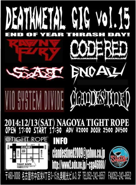 13DEC̾¸Å²°TIGHTROPE DEATHMETALGIGvol15CLANDESTINED RAGINGFURY ENDALL CORDRED VIOSYSTEMDEVIDE SxAxT17:00/17:30 ¡ï2000/ ͽÌ󾵤êÃæ!¥è¥í¥·¥¯¥Ç¥¹¥á¥¿¥ë¡ª