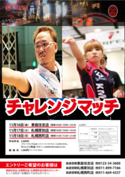 貴重なページを拝借します!管理人さんありがとうございます♪ みなさんご存知、浅田斉吾プロと松本伊代プロがG-LOVEに襲来します! 今年度のパーフェクトを終え、忘年会、慰労会をかねてパーティ風にワイワイやりましょう♪ チャレンジマッチのご参加付きで2500円♪ プロを見ながら観戦もよし!入場料のみ1000円♪ ワチャワチャ楽しく楽しみましょう♪ 参加ご希望の方はお早目に!! G-LOVE 西大島 03-5609-9602