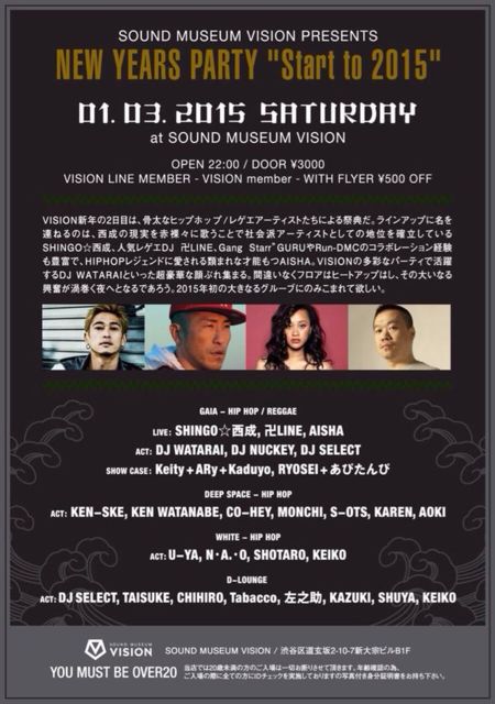 1/3(土)「NEW YEARS PARTY」@渋谷VISION