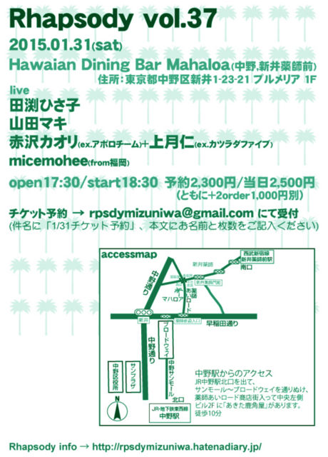 2015 / 1 / 17 (sat) 19:00〜All Night !!