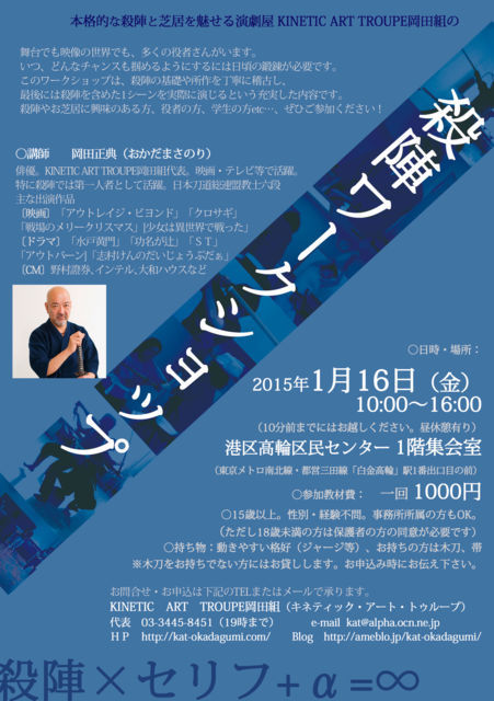 ËܳÊŪ¤Ê»¦¿Ø¤È¼Çµï¤òÌ¥¤»¤ë±é·à²°KINETIC ART TROUPE²¬ÅÄÁȤǤϡ¢ ËÜǯ¤âÊѤï¤é¤ºÄê´üŪ¤Ë»¦¿Ø¥ï¡¼¥¯¥·¥ç¥Ã¥×¤ò¹Ô¤Ã¤Æ¤Þ¤¤¤ê¤Þ¤¹¡£ ²¿Å٤⤪±Û¤·¤¤¤¿¤À¤¤¤Æ¤¤¤ë³§ÍͤϤâ¤Á¤í¤ó¤Î¤³¤È¡¢»¦¿Ø¤Ë¶½Ì£¤Ï¤¢¤ë¤±¤É¤â°ìÊâÆ§¤ß½Ð¤¹¤Î¤ò̤äƤ¤¤ë¤È¤¤¤¦Êý¤â¤¼¤Ò°ìÅÙ¡¢°ì½ï¤Ë¤ä¤Ã¤Æ¤ß¤Þ¤·¤ç¤¦¡£ ¤µ¤Æ¡¢ 2015ǯºÇ½é¤Î¥ï¡¼¥¯¥·¥ç¥Ã¥×¤Ï1·î16Æü¡Ê¶â¡Ë10»þ¡Á16»þ ¹âÎØ¶è̱¥»¥ó¥¿¡¼1³¬½¸²ñ¼¼¤Ç¤Î³«ºÅ¤Ç¤¹¡£ »²²ÃÈñ¤Ï1000±ß¤Ç¤¹¡£ ¤ª¿½¤·¹þ¤ß¤Ï¥á¡¼¥ë kat@alpha.ocn.ne.jp ¤Þ¤Ç¡¢ÆóÆüÁ°¤Þ¤Ç¤Ë¤´Ï¢Íí¤¤¤¿¤À¤±¤ë¤È½õ¤«¤ê¤Þ¤¹¡£ ÌÚÅá¤ò¤ª»ý¤Á¤Î