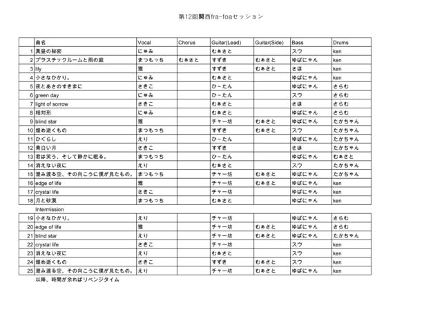 2013年7月の開催以来、たいへん長らくお待たせいたしました。 帰ってきた関西fra-foaセッションです。 fra-foa(三上ちさこ)好きの人が集まってfra-foa(三上ちさこ)の曲を演奏しまくるイベント@関西です。 初参加の方、楽器未経験の方でも楽しめるイベントですので、 是非お気軽にご参加ください! 関西の方だけでなく、全国の皆様も都合がつけば是非参加して下さい! ご不明な点がありましたら書き込みをしていただくか、幹事までメッセージください(*^_^*) ●イベント詳細● 日時 2015年1月3日(土) 14:00〜18:00 場所 ベー