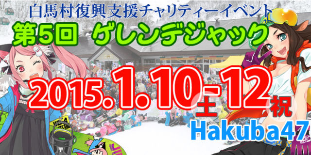 【NEW】 三次募集を12/10〜12/21 先着20名で行います。 【場所】 Hakuba47 レストラン アリス 【日時】 2015/1/10(土曜日) 18:00〜21:00 【料金】 3500円 食事・飲み放題付き(半立食) ※事前振込み制 入金先などにつきましては後ほど連絡いたします(11/21頃予定) 【定員】 120名(先着順) 追加+100名(先着順) 【募集期間】 ・一次募集 2014年11月12日(水)22:00〜11月20日(木)20:00 ☆満員御礼☆ ・二次募集(100名) 2014年11月16日(日)20:00〜11月20日(木)20:00 ・三次募集(20名) 2014年1