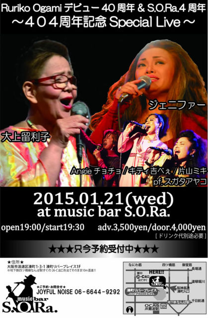 2015ǯ¡¢Ç¯ÌÀ¤±Á᡹¤ÎÌ̥ܶ饤¥Ö¡ª S.O.Ra.4¼þǯµÇ°¥é¥¤¥Ö¤Î¥È¥Ã¥×¥Ð¥Ã¥¿¡¼¤ËÁª¤Ð¤ì¤¿Âç¾åÎ±Íø»Ò¤µ¤ó¡ª Èà½÷¤â¥Ç¥Ó¥å¡¼¤«¤é40ǯÌܤÎǯ¡ª ¥¿¥¤¥Õ¡¼¥ó¥ì¥Ç¥£¡¼¤Ï¤³¤Î¶¯¤°¦¤ò°ú¤Ã¤µ¤²¤ÆÇßÅĤ«¤éÆñÇȤޤDzΤ¦¤è²Î¤¦¤è¡Á♬ ¡ÖRuriko Ogami ¥Ç¥Ó¥å¡¼40¼þǯ & S.O.Ra 4¼þǯ¡¡404¼þǯµÇ° Special Live¡× 2015ǯ1·î21Æü¡Ê¿å¡Ë ³«¾ì¡§19»þ00ʬ ³«±é¡§19»þ30ʬ Á°Çä¡§3,500±ß¡¿ÅöÆü¡§4,000±ß ½Ð±é¡§ Âç¾åÎ±Íø»Ò¡¦¥¸¥§¥Ë¥Õ¥¡¡¼¡¦Angie¥Á¥ç¥Á¥ç¡¦¥¥Æ¥£µÈ¤Ù¤¨¡¦ÊÒ»³¥ß¥ ¥¹¥¬¥¿¥¢¥ä¥³¡Êpf.¡Ë ¾ì½ê¡§ Âçºå¤Ê¤ó¤Ð¡¦Ì«Ä®¥×¥ì¥¤¥¹ »Í¤Ä