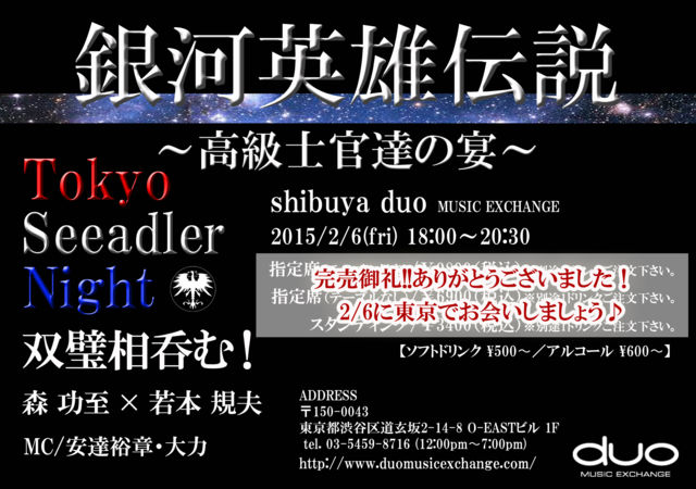 £²£°£±£µÇ¯£²·î£¶Æü¶âÍËÆü¡¡£±£¸¡§£°£°¡Á£²£°¡§£³£° ¶ä²Ï±ÑͺÅÁÀâ¡¡¹âµé»Î´±¤¿¤Á¤Î±ã Tokyo¡¡Seeadler¡¡Night ¥¹¥Ú¥·¥ã¥ë¥È¡¼¥¯¥·¥ç¡¼ ÁÐàúÁêÆÝ¤à¡Ê¼ãËܧÉס߿¹¸ù»ê¡Ë ¾ì½ê¡§½Âëduo¡¡Music Exchange ¡ã¥Á¥±¥Ã¥ÈÂå¶â¡ä »ØÄêÀʡʥơ¼¥Ö¥ëÉÕ¤¡Ë¡¿\9800¡ÊÀǹþ¡Ë¢¨ÊÌÅÓ1¥É¥ê¥ó¥¯¤´Ãíʸ²¼¤µ¤¤¡£¡Ê´°Çä¡Ë »ØÄêÀʡʥơ¼¥Ö¥ë¤Ê¤·¡Ë¡¿\6900¡ÊÀǹþ¡Ë¢¨ÊÌÅÓ1¥É¥ê¥ó¥¯¤´Ãíʸ²¼¤µ¤¤¡£¡Ê´°Çä¡Ë ¥¹¥¿¥ó¥Ç¥£¥ó¥°¡¡¡¡¡¡¡¡¡¡¡¿\3400¡ÊÀǹþ¡Ë¢¨ÊÌÅÓ1¥É¥ê¥ó¥¯¤´Ãíʸ²¼¤µ¤¤¡£¡Ê´°Çä¡Ë ¡Ú¥×¥ì¥¤¥¬¥¤¥É¡Û ¥×¥ì¥¤¥¬¥¤¥ÉȯÇ䳫»Ï¡¡ £²£°£±£´Ç¯£±£²·î£±£¶Æü¡Ê