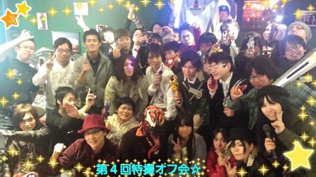 第5回特撮オフ会 ●挨拶● はじめまして、幹事のシュウと申しますm(_ _)m 特撮が好きだけど手頃なオフ会が見つからないだったら自分で開いて特撮仲間を作ろうという目的で実現した特撮オフ会。大好評頂き第5回目の開催になります∩( ・ω・)∩ばんじゃ〜い 仮面ライダー・ウルトラマン・戦隊ヒーローはもちろんのことゴジラやメタルヒーローなど特撮とわかるものでしたら何でもOKです♪ 特撮にそんなに詳しくない方でも興味があれば大歓迎ですので、是非お気軽にお越し下さい