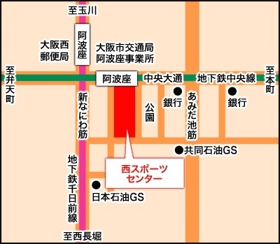 À¾¥¹¥Ý¡¼¥Ä¥»¥ó¥¿¡¼¡¡TEL 06-6538-3413 http://www.kslosaka.jp/shisetsu/nishi.html ¡Ú½»½ê¡ÛÂçºå»ÔÀ¾¶èΩÇäËÙ4ÃúÌÜ10ÈÖ18¹æ ¡¡°¤ÇȺ¥»¥ó¥¿¡¼¥Ó¥ë6³¬ ¡ÚºÇ´ó¤ê±Ø¡Û Ãϲ¼Å´Ãæ±ûÀþ¤ª¤è¤ÓÀéÆüÁ°Àþ ¡Ö°¤ÇȺ¡×2¤Þ¤¿¤Ï4Èֽиý¤è¤ê¤¹¤° ¡Ö°¤ÇȺ¥»¥ó¥¿¡¼¥Ó¥ë¡×6³¬