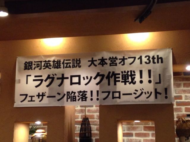 とうとう15回目を迎えます大本営!2015大いなる年にプロージット! 卿ら、そろそろ動く時が来た! フェザーン(池袋)の奴らはわれらがいつまでもオーディーン(江古田)に 留まってると思うのなら夢を見せて置くとしよう!! フェザーンに進駐し同盟軍最後の年へ!ラグナロック作戦であるww っと前フリはこのへんで(笑) もちろん同盟ファンも参加可能です。 今回はあっと驚く池袋でプロージット! 特に今回も堅苦しく何かしたりする予定もなくのんびり銀伝の話の大輪を 咲かせたいと思ってます。コスプレ等は自由ですが、