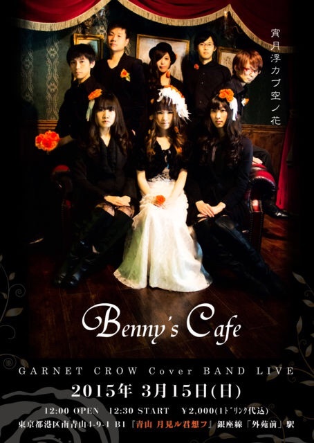 2015.2.4更新 皆さん、あけましておめでとうございます! 今年もBenny's Cafeをよろしくお願いします(///ˊㅿˋ///) 改めまして、 GARNET CROWのカバーバンドをしています、 Benny's Cafeと申します。 今回、LIVEを行う事になりましたので、お知らせしたいと思います(^^) 生の音でGARNET CROWの曲を聞きたい方! 是非起こしください٩(ˊᗜˋ*)و ※※※※※※※※※※※※※※※※※※※※※※※※※※※※※※※※※※※※※ 【日時】2015年3月15日(日) 【時間】12:00