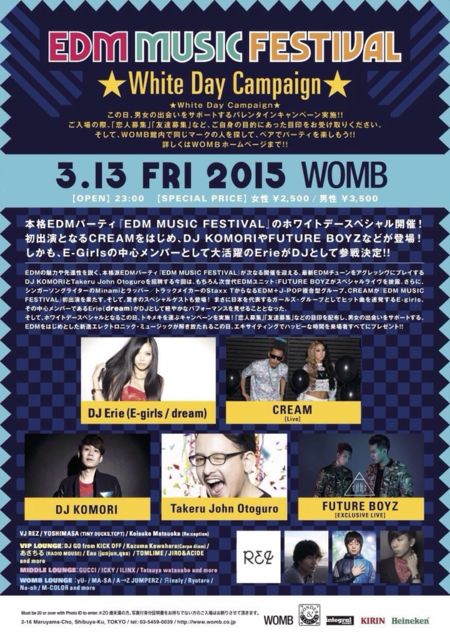 本格EDMパーティ『EDM MUSIC FESTIVAL』のホワイトデースペシャル開催!