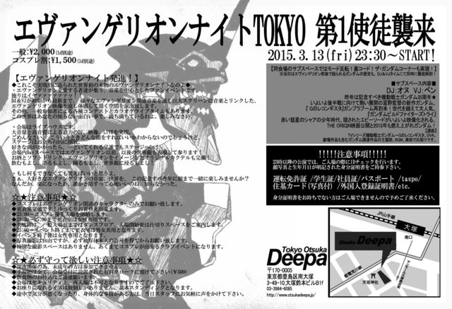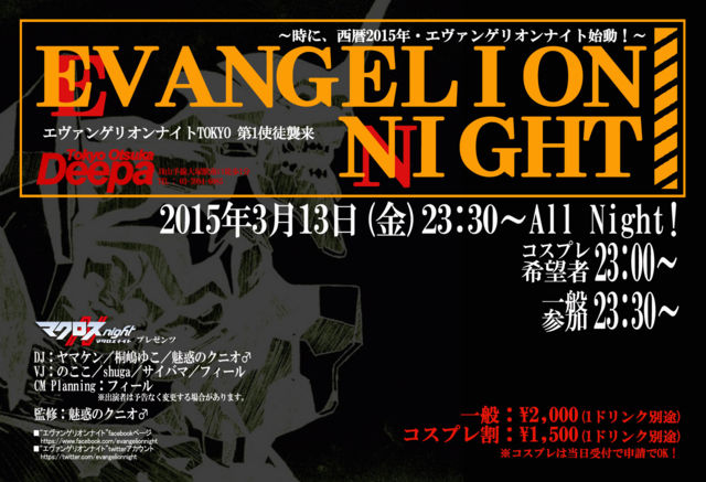 ¥¨¥ô¥¡¥ó¥²¥ê¥ª¥ó¥Õ¥¡¥ó¤Ë¤è¤ë¡¢ ºîÉʤȲ»³Ú¤ò¤³¤è¤Ê¤¯°¦¤·¤Æ¤ä¤Þ¤Ê¤¤¿Í¤ØÂ£¤ë¡¢ DJ¥Ñ¡¼¥Æ¥£¡¼¡õ²Î¤È²»³Ú¤Îº×ŵ¡¢ ¥¹¥Æ¡¼¥¸¤Ç¤Î¥«¥é¥ª¥±¥é¥¤¥Ö¤Ë¤â»²²Ã¤Ç¤¤Þ¤¹¡ª ¥«¥é¥ª¥±»²²Ã¤ÏÅöÆü¼õÉÕ¤ÇOK¡ª ¥³¥¹¥×¥ì»²²Ã¤âÂç´¿·Þ¡ª ¥³¥¹¥×¥ì³ä¤â¤¢¤ê¤Þ¤¹¡£ ³§¤µ¤ó¡¢¤ªµ¤·Ú¤ËÍ·¤Ó¤ËÍè¤Æ¤¯¤À¤µ¤¤¡ª ¡È¥¨¥ô¥¡¥ó¥²¥ê¥ª¥ó¥Ê¥¤¥ÈTOKYO Âè1»ÈÅ̽±Íè¡É ¡Á»þ¤Ë¡¢À¾Îñ2015ǯ¡¦¥¨¥ô¥¡¥ó¥²¥ê¥ª¥ó¥Ê¥¤¥È»Ïư¡ª¡Á Æü»þ¡§2015ǯ3·î13Æü(¶â)23:30¡ÁAll Night¡ª ¢¨Æþ¾ì»þ´Ö¡§¥³¥¹¥×¥ì´õ˾¼Ô¡§23:00¡Á¡¡°ìÈÌ»²²Ã¡§23:30¡Á ²ñ¾ì¡§ÂçÄÍDeepa¡¡¢¨JR»³¼êÀþ¡¦ÂçÄͱØ