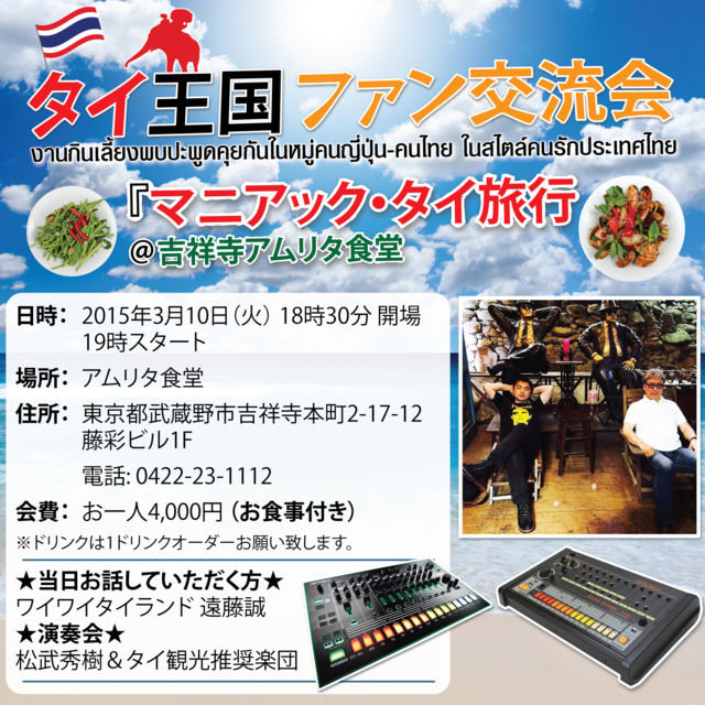 ¥ï¥¤¥ï¥¤¥¿¥¤¥é¥ó¥É¼çºÅ¡Ö¥¿¥¤²¦¹ñ¥Õ¥¡¥ó¸òή²ñ¡×¤òµÈ¾Í»û¥¢¥à¥ê¥¿¿©Æ²¤Ç³«ºÅ¤¤¤¿¤·¤Þ¤¹¡£Åìµþ¡¢Ì¾¸Å²°¡¢Âçºå¡¢ÀŲ¬¡¢¥Ð¥ó¥³¥¯¡¢¥Á¥§¥ó¥Þ¥¤¤Ç³«ºÅ¤µ¤ì¤Æ¤¤¤ë¥¿¥¤¹¥¤¤Êͧ㤬Âô»³¤Ç¤¤ë¿Íµ¤¤Î¸òή²ñ¤Ç¤¹¡£¥¿¥¤²¦¹ñ¤ò°¦¤¹¤ëÊý¤Ê¤é¤É¤Ê¤¿¤Ç¤â»²²Ã¤Ç¤¤ë¥¤¥Ù¥ó¥È¤Ç¤¹¡£¤³¤Î¸òή²ñ¤Ç¤Ï¡¢¤È¤Ë¤«¤¯¥¿¥¤¤¬¹¥¤¡ª¤ÊÊý¡¹¤Ë¤´»²²Ã¤¤¤¿¤À¤¡¢¥¿¥¤Î¹¹Ô¤ò¤â¤Ã¤È¥Ç¥£¡¼¥×¤Ë³Ú¤·¤à¥¢¥É¥Ð¥¤¥¹¤ä¡¢¥¿¥¤¤Ë´Ø·¸¤¹¤ë¥Í¥Ã¥È¥ï¡¼¥¯ºî¤ê¤ä¡¢¥¿¥¤¤Ç¤Î¿·¤¿¤Ê¥Ó¥¸¥Í¥¹»ö¶ÈŸ³«¤Ê¤É¡¢º£¸å¤Î³èư¤Ë³è¤«¤·¤Æ¤¤¤¿¤À¤¯¤³¤È¤òÌÜŪ¤È¤·¤Æ¤ª¤ê¤Þ¤¹¡£ º£²ó¤Ï4¿ÍÌܤÎYMO¤Ç¤¢¤ë¾¾É𽨼ù¤µ