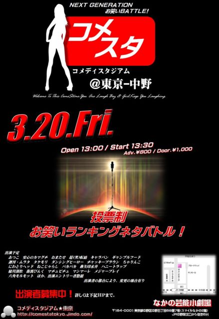 ¥³¥á¥Ç¥£¥¹¥¿¥¸¥¢¥à¡÷Åìµþ-ÃæÌî http://comestatokyo.jimdo.com/ £³·î£²£°Æü¶âÍËÆü ³«¾ì ¡¡13¡§00¡Á ¡¡Æþ¾ì¥Á¥±¥Ã¥È¤ò¤ª»ý¤Á¤Î¤ªµÒÍͤè¤êÆþ¾ì ¡¡13¡§10¡Á ¡¡ÅöÆü¡¦¥Á¥±¥Ã¥È¤ò¼è¤êÃÖ¤¤Ë¤·¤Æ¤¤¤ë¤ªµÒÍÍ¡¢Â³¤¤¤ÆÆþ¾ì ¡¡¡Ê¥Á¥±¥Ã¥È¤ò¤ª»ý¤Á¤Ç̵¤¤¤ªµÒÍÍ¡Ë ³«±é ¡¡13¡§30¡Á ²ñ¾ì ¡¡¤Ê¤«¤Î·Ýǽ¾®·à¾ì ¥¨¥ì¥Ù¡¼¥¿¤Ç¡¢£²³¬¤Ø¡£ º¸¤Ë¼ó¤ò·¹¤±¤ë¤È¡¢¼õÉÕ¤¬¡¦¡¦¡¦ °ÆÆâÈĤò·Ç¼¨¤·¤Þ¤¹¤Î¤Ç¡¢½¾¤Ã¤ÆÀèÆ¬¤è¤ê½ç¼¡¤ªÊ¤Ӳ¼¤µ¤¤¡£ ¤Þ¤¿¡¢¤¢¤Þ¤ê¤Ë¤âÁ᤯¤ªµÒÍͤ¬¤ªÊ¤Ӥˤʤë¤È¡¢ÄÌÏ©¤¬¥¥å¥¦¥¥å¥¦¤Ë¤Ê¤ê¤½¤¦¤Ç¤¹¤Î¤Ç¡¢¤½¤³¤ÇÍͻҤò
