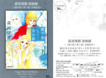萩尾望都の貴重なカラーイラストを多数展示します。 全て直筆で描かれた美しい原画の世界。 会場にてオリジナルグッズの販売も行います。 (DMの文面より) 銀座 スパンアートギャラリー http://www.span-art.co.jp/ 東京都中央区銀座2−2−18 西欧ビル1F 電話 03−5524−3060 3/8(日)〜3/15(日) 11時〜19時(最終日 17時まで) 会期中無休