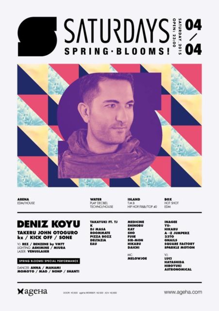 ´ÉÍý¿ÍÍ͹ðÃμºÎ餤¤¿¤·¤Þ¤¹m(_ _)m 4/4 (ÅÚ) SATURDAYS -SPRING BLOOMS!- @ ageHa http://www.ageha.com/schedule/detail.php?id=20150404 OPEN 23:00 DOOR : 3,500yen ageHa MEMBER : 2,500yen ADV: 2,800yen ½Õ¤Î¤½¤èÉ÷¤È¶¦¤ËageHa¤Ë¿·¤·¤¤Ì¿¤¬²êÀ¸¤¨¤ë¡ª¥¯¥é¥Ö¥¤¥Ù¥ó¥È¤ÎÏȤòͤ¨¤¿¥Ë¥å¡¼¡¦¥Ñ¡¼¥Æ¥£¡¼¡¢¡ÖSATURDAYS¡×¤¬¤¤¤è¤¤¤è¥¹¥¿¡¼¥È¡£¥á¥¤¥ó¥Õ¥í¥¢¤Ç¤¢¤ëARENA¤Ë¤Ï¡¢Ëè²ó³¤³°¤«¤é¤Î¥¹¥Ú¥·¥ã¥ë¤Ê¥²¥¹¥È㤬EDM¤ò¼ç¼´¤È¤·¤¿À¹¤ê¾å¤¬¤êɬ»ê¤Î¥¢¥Ã¥×¥ê¥Õ¥Æ¥£¥ó¥°¤Ê¥µ¥¦¥ó¥É¤ò¤ªÆÏ¤±¡£¤Þ¤¿¥À¥ó¥µ¡¼¡¢¥é¥¤¥Æ¥£¥ó¥°¡¢¥ì¡¼¥¶¡¼¤¬°ì