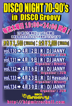 ¡ÚËè½µÌÚÍËÆü¤Ï¡ª¤ª¤Ê¤¸¤ßGroovy¤Î¥Ç¥£¥¹¥³¥Ê¥¤¥È¡Û 70ǯÂå¤ÎSOUL¥ß¥å¡¼¥¸¥Ã¥¯¤«¤éºÇ¿·¤ÎEDM¤Þ¤Ç¥ª¡¼¥ë¥Ò¥Ã¥È¥á¥É¥ì¡¼¡ªÍÙ¤ì¤ë¶ÊÀ¹¤êÂô»³¤Ç¤ªÂ£¤ê¤·¤Þ¤¹♬ ¡ÚOrganized By DISCO Groovy¡Û ¡Ú£Ä£Ê¡Û JANNY¡ÊMAHARAJA ROPPONGI¡Ë ¡Ú²»³Ú¡ÛALL GENRE ¡ÊSOUL¡¢Ãݤλҡ¢¥À¥ó¥¯¥é¡¢EURO¡¢HI-NRG¡¢TECHNO¡¢R&B¡¢EDM¡¢etc¡Ä¡Ë ¡Ú³«ºÅ»þ´Ö¡Û 19:00¡Á24:00 ¡ÚÎÁ¶â¡Û ÃËÀ¡§¡ï2,500/2Drinks¡Ü¥Ó¥å¥Ã¥Õ¥§ÉÕ ½÷À¡§¡ï2,000/2Drinks¡Ü¥Ó¥å¥Ã¥Õ¥§ÉÕ ¡Ê¥Ó¥å¥Ã¥Õ¥§¤Ï19»þ¤è¤ê¤´ÍѰդ·¤Þ¤¹¤¬¿ôÎ̸ÂÄê¤Ë¤Ä¤Ìµ¤¯¤Ê¤ê¼¡Â轪λ¤È¤Ê¤ê¤Þ¤¹¡Ë