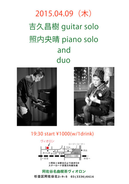 ¤³¤ó¤Ë¤Á¤Ï¡¢¥®¥¿¡¼¤ÎµÈµ×¤È¿½¤·¤Þ¤¹¡£ ¥é¥¤¥Ö¤Î¤´°ÆÆâ¤ò¤µ¤»¤Æ¤¯¤À¤µ¤¤¡£ 2015/04/09¡ÊÌÚ¡Ë ¡ØµÈµ×¾»¼ùguitar ¾ÈÆâ±ûÀ²piano solo+solo+duo¡Ù °¤º´¥öë̾¶ÊµÊÃã¥ô¥£¥ª¥í¥ó ¿ùʶ谤º´Ã«ËÌ2-9-5¡¡03(3336)6414 19:30start ¡ï1,000¡Ê1drinkÉÕ¡Ë ¡ÊÃÏ¿Þ¡Ë http://www.geocities.jp/redsno9/violon.gif ¥¢¥°¥ì¥Ã¥·¥Ö¤Ç¤¢¤ê¤Ê¤¬¤éµ¤ÉʤÈÍ¥¤·¤µ¤ò´¶¤¸¤µ¤»¤ë¡¢¡Ö¥¤¥ó¥×¥í³¦¤Îµ®¸ø»Ò¡×¤³¤È¾ÈÆâ±ûÀ²¤µ¤ó¤È¡¢¤½¤ì¤¾¤ì¤Î¥½¥í¤È¥Ç¥å¥ª¤Ç¤ªÆÏ¤±¤·¤Þ¤¹¡£ ¥ô¥£¥ª¥í¥ó¤Ï¥ì¥È¥í¤Ê̾¶ÊµÊÃã¡Ê¥¢¥ë¥³¡¼¥ëÎà¤Ï¤¢¤ê¤Þ¤»¤ó¡Ë¡¢¤æ¤Ã¤¿¤ê¤È¤·¤¿¶õ´Ö¤Ç±éÁÕ¤ò¤ª³Ú¤·¤ß