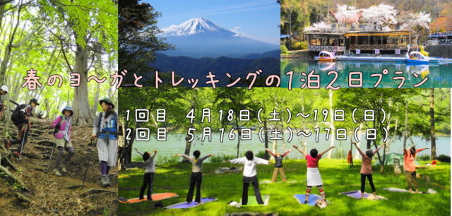 今年も、開催決定しました! 春のヨ〜ガとトレッキングの1泊2日プラン 開催予定日 4月18日(土)〜19日(日) 5月16日(土)〜17日(日) 冬の間にたまったもの、いっきにデトックス! 1泊2日でヨガとトレッキングをしちゃう欲張りプランです。 湖畔に面したお部屋でのヨガと(お天気が良ければ 外ヨガも!) 翌日は、山頂から絶景が楽しめる蛾ヶ岳(ひるがたけ)をトレッキング。 滞在中のお食事は、地元野菜をたっぷり取り入れたヘルシー メニューをお楽しみいただきます。 ★ただ今参加者