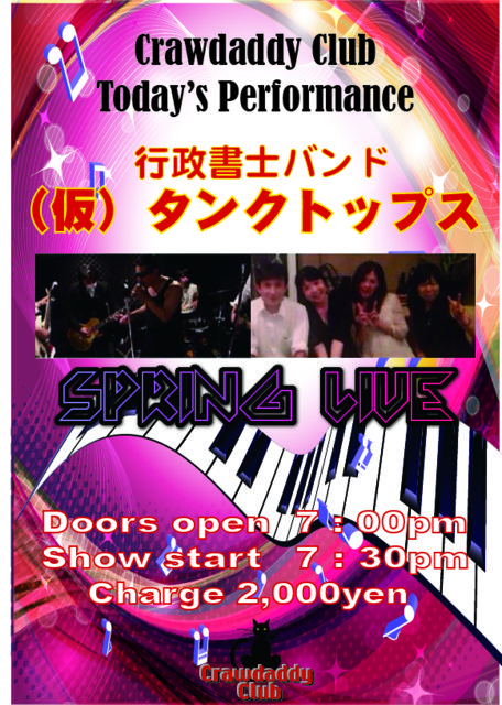 4/28 ËÜÆü¤Î¥é¥¤¥Ö ¹ÔÀ¯½ñ»Î¥Ð¥ó¥É ¡Ö¡Ê²¾¡Ë¥¿¥ó¥¯¥È¥Ã¥×¥¹¡×¥é¥¤¥Ö¡¡ OPEN 19:00 START 19:30 CHARGE 2000±ß