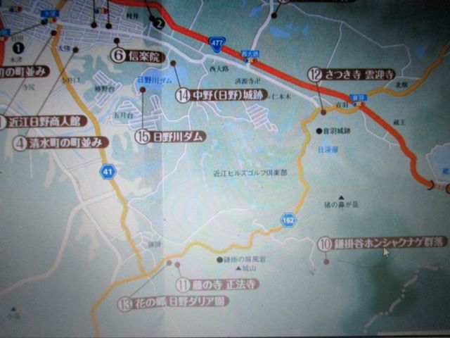 伊勢松阪と会津若松の城下町発展の礎を築いた戦国武将、蒲生氏郷ゆかりの滋賀県日野町にはホンシャクナゲの自生地があり今年は4月29日から開園、日野駅から臨時バスも運行されます。 そこでシャクナゲ渓と藤の寺・正法寺、蒲生一族の歴史を偲ぶ鎌掛城を訪問し、時間があれば桟敷窓の残る旧家が並ぶ西大路藩の陣屋町地区へと歩きたいと思います。 出発 日野駅10時発の藤の寺、シャクナゲ渓行き臨時バス乗車。(近江八幡駅南口9時20分発の北畑口行きバスで日野駅乗継が便利です) 藤の寺正法寺〜鎌掛山屋敷(蒲生氏郷の父の城)〜